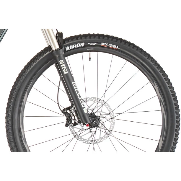 Grâce au cadre léger en aluminium avec une géométrie adaptée au trail, à la fourche à suspension de 120 mm et aux roues silencieuses de 29 pouces avec pneus Tubeless, tu as toujours le contrôle total sur le terrain.