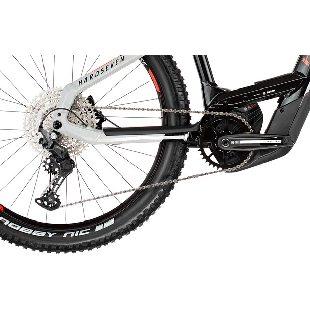 Le nouveau HardSeven 9 est prêt pour toutes les aventures ! Qu’il s’agisse de longues randonnées avec de courtes descentes en sentier, de tours rapides après le travail ou du trajet quotidien vers le travail – avec le nouveau moteur compact et puissant Bosch Performance CX Gen 4, la transmission Shimano Deore à 11 vitesses, les freins à disque à 4 pistons et un débattement de 120 mm, tu es parfaitement équipé pour les randonnées sur des terrains faciles. Avec le prolongateur d’autonomie, tu peux augmenter ton autonomie de 625Wh à une capacité totale de 1.125Wh – pour un plaisir de conduite sans limites.