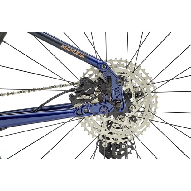 Le Mahuna crée l’équilibre parfait entre le et l’engin de plaisir polyvalent. Ses roues de 29″ roulent facilement sur les obstacles et assurent une conduite douce et prévisible. La fourche dispose d’un débattement de 100 mm et contribue, avec les roues de 29″, à tenir les irrégularités en respect. Avec les puissants freins à disque hydrauliques, vous avez le contrôle total de l’arrêt. La transmission à 11 vitesses fait en sorte que le Mahuna soit aussi amusant en montée qu’en descente.