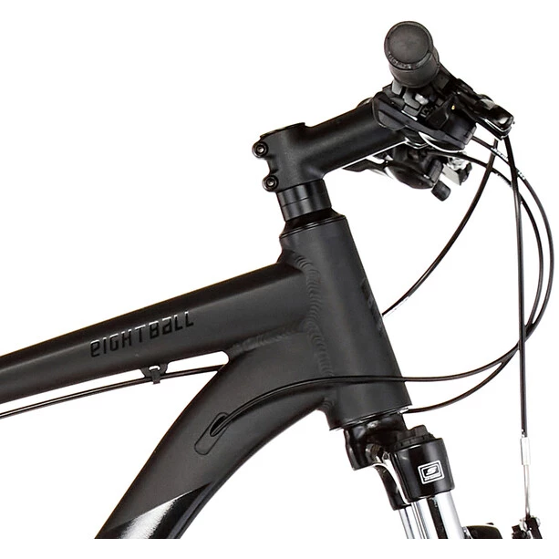 C’est exactement pour ce type de circuit qu’a été conçu le modèle Eight Ball. La géométrie du cadre en aluminium 6061 garantit une conduite sportive et joueuse, tout en offrant une position de conduite confortable. Ses composants Shimano de grande qualité, tels que la transmission 24 vitesses Shimano Acera, le dérailleur avant, la cassette et les leviers de changement de vitesse Shimano Rapidfire, assurent un plaisir de conduite durable. Le Serious Eight Ball présente d’autres avantages : des freins V-brake mordants et une fourche suspendue Suntour avec débattement de 80 mm, qui assurent une sécurité optimale et un vrai confort en descente. Les jantes double paroi de ses roues 29 pouces et le boîtier de pédalier à cartouche n’exigent quasiment aucun entretien, si cela n’est pas un atout supplémentaire ?