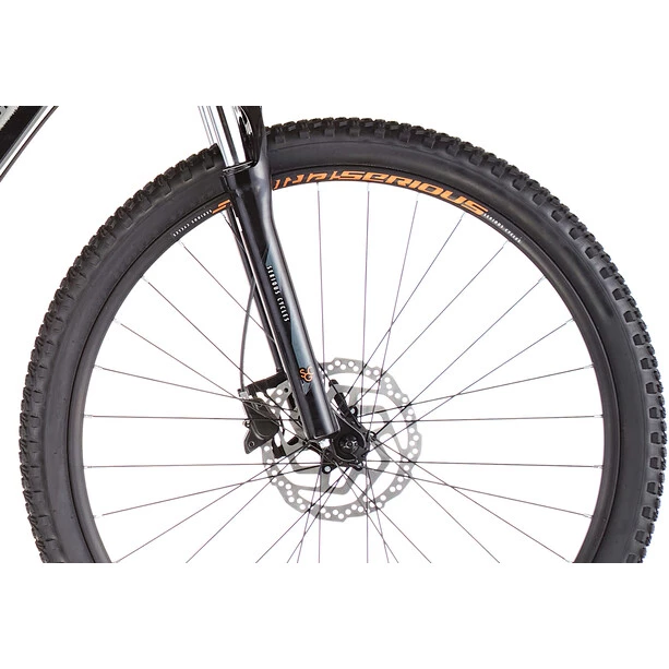 La dernière version du célèbre VTT Serious Rockville est idéale pour ce large domaine d’utilisation. Avec des roues de 27,5″ et l’utilisation systématique de freins à disque à l’avant et à l’arrière, le Rockville Disc est plus moderne et plus puissant que jamais. La nouvelle version Disc de ce classique convainc également, dès le tarif d’entrée de gamme, avec un confort de changement de vitesse 24 vitesses digne de son rang, une fourche à suspension solide et un cadre en aluminium stable. La position d’assise du Serious Rockville Disc est modérée à sportive-confortable et offre ainsi beaucoup de contrôle et de confort aux débutants.